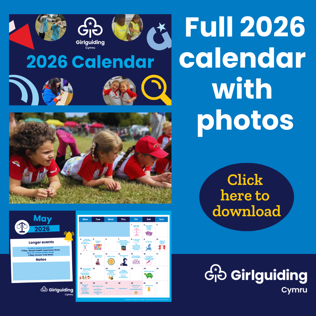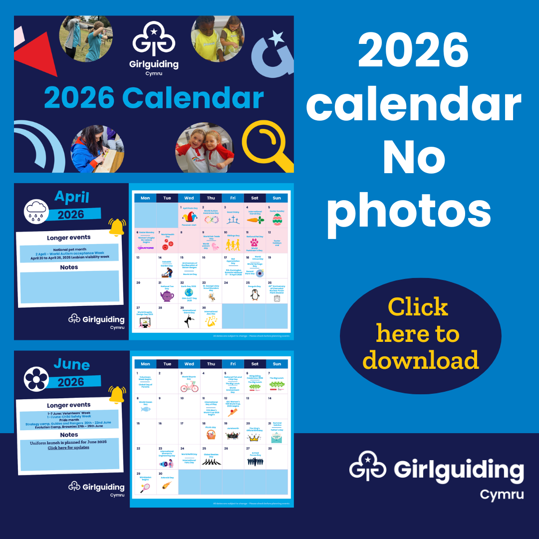 The calendar is filled with fun and engaging events, awareness days and celebrations. We have also added dates for our Girlguiding Cymru and Girlguiding events.