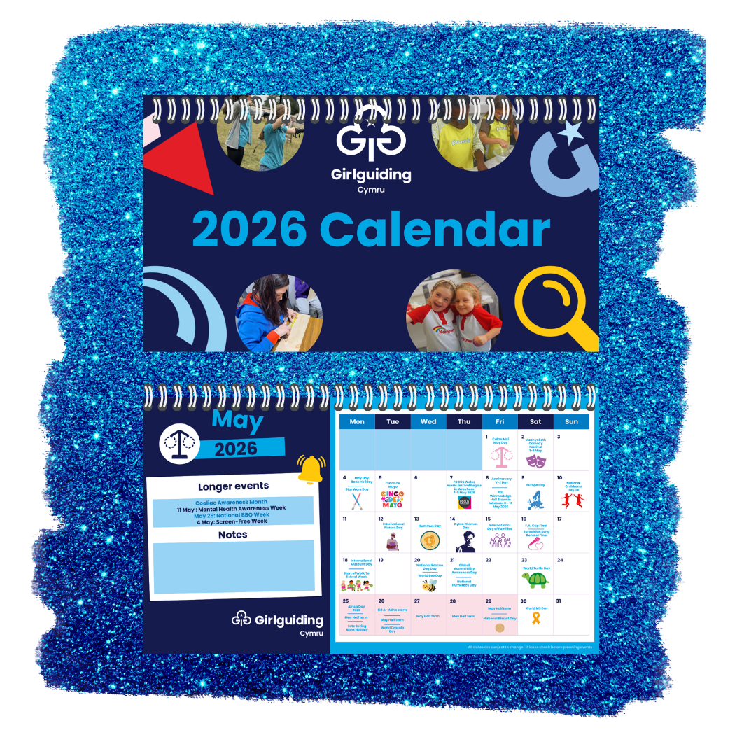 Our 2026 Girlguiding Cymru calendar is available in two versions to suit leaders both in and outside Wales.