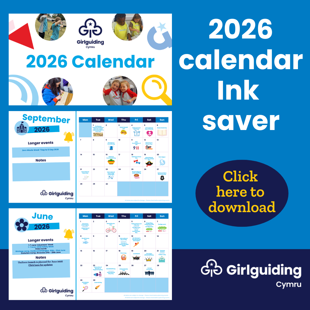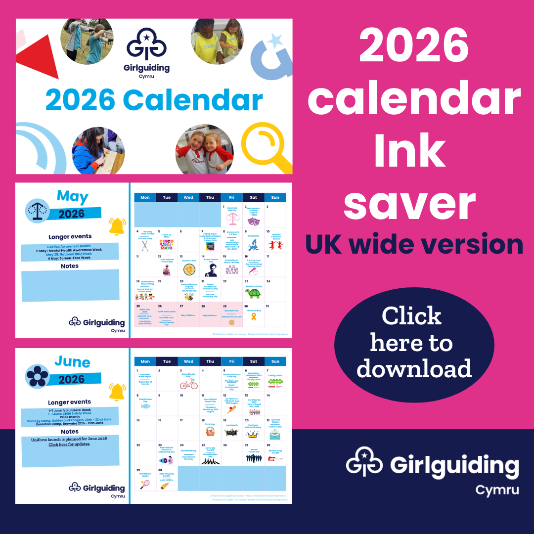 Girlguiding Cymru is excited to announce that our printable calendar has returned for 2026!