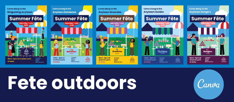 These templates are designed to help volunteers create posters quickly and confidently, while using our brand correctly and consistently. Whether you’re promoting a local event, sharing information with your community, or celebrating guiding, these resources are here to save you time and effort.