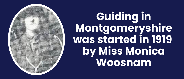 Guiding in Montgomeryshire was started in 1919 by Miss Monica Woosnam (later Mrs. R MacPherson) and her sister Miss Gaynor Woosnam (later Mrs. J. E. M. Richard). The County Standard was given to the County by